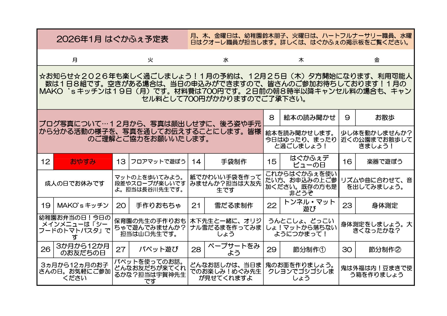 - 1月度の予定をアップ!『0・1歳向けの親子教室』平日毎日開催!#はぐかふぇ [2025.12.15更新]