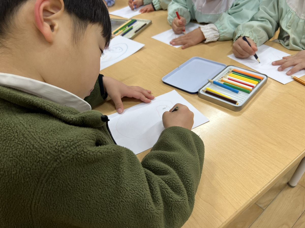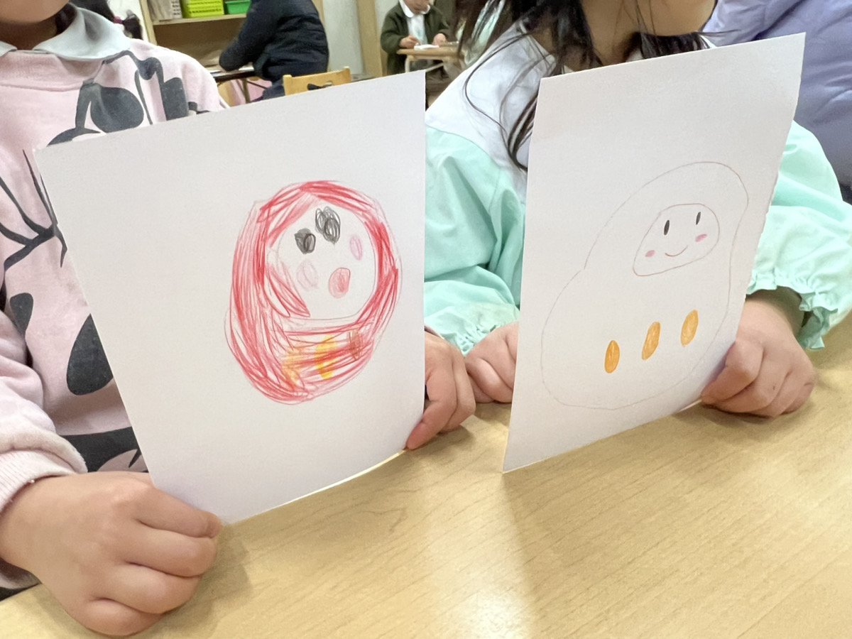 ドリームキッズ担当 堀内・手塚 [2026.01.09] 絵画「だるま」 今日はだるまの絵を描きました。お正月といえばと話をすると、おもちや日の出などとだるまは出てきませんでしたが、赤いものとヒントを言うと声をそろえて「だるま!」と答えてくれました。 赤色のだるまもいれば、青色のだるまもいました!表情もかわいらしく描くことができましたね! 前の記事へ次の記事へ