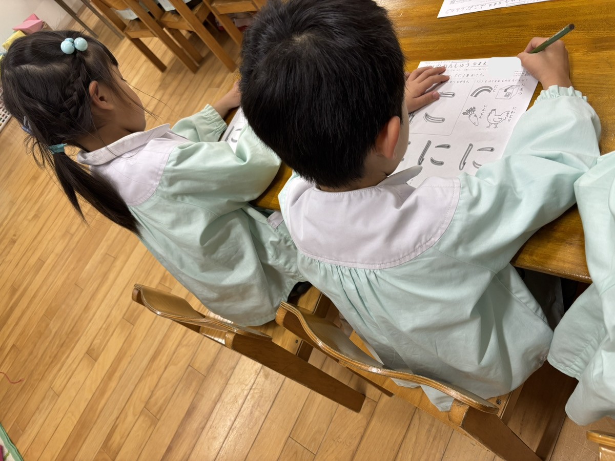 今日は、ひらがなの「に」の練習に取り組みました。
